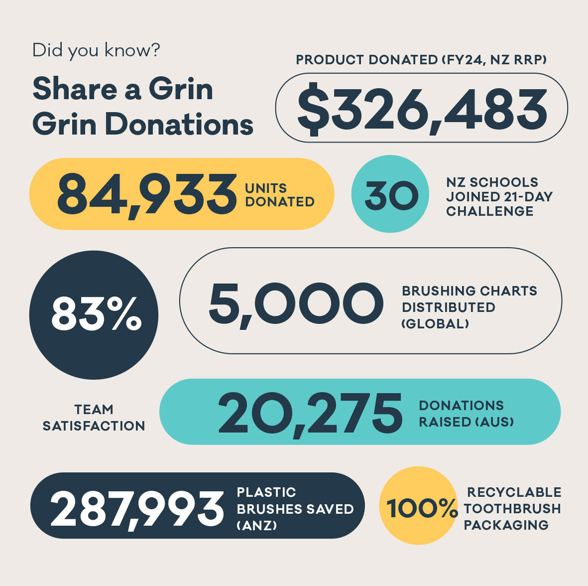 At Grin, we’re dedicated to making a positive difference beyond our products. Through our Share A Grin initiative, we proudly commit 2% of our global revenue to support charities and schools, ensuring essential oral care and education reach those who need it most.We believe true impact comes from connection - empowering communities with the tools and knowledge for healthier smiles and brighter futures. Giving back isn’t just part of our business; it’s at the heart of who we are.Learn more about Share A Grin here (link to Share A Grin page) here