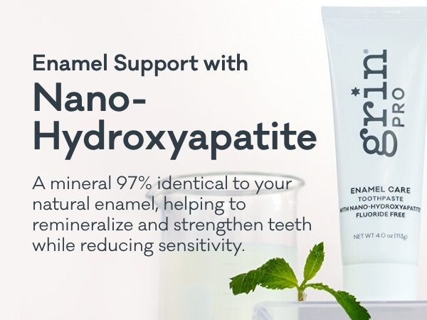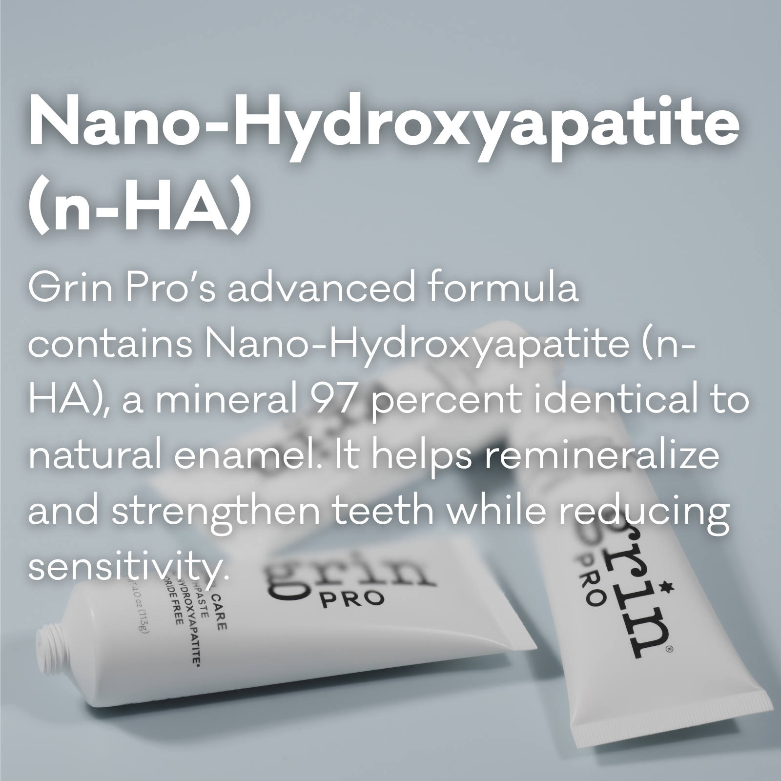 - Nano-Hydroxyapatite to restore enamel and reduce sensitivity